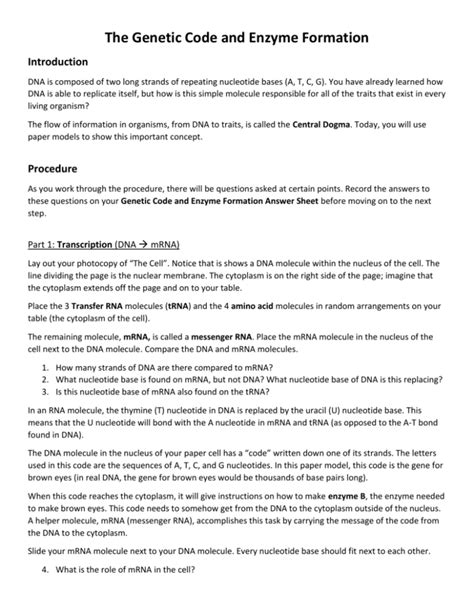Read Genetic Code And Enzyme Formation Answer Reader